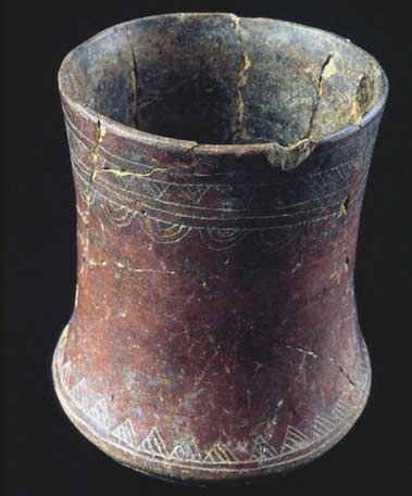 85 - Vasija con forma de vaso troncocónico de borde plano, cuerpo convergente h...