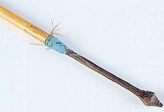 61 - Peine con puas de madera de chonta anudadas y embreadas en uno de sus extre...