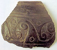 2189 - Plato cerámico trípode con decoración geométrica pintada y excisa.