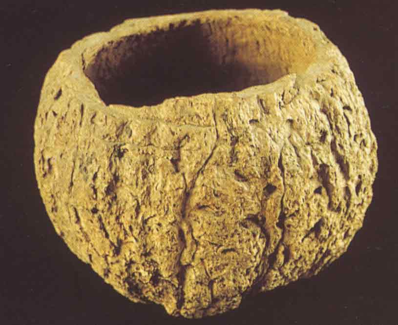 76 - Vasija con forma de copa de pasta de color crema, borde recto, cuerpo esf...