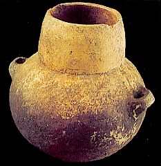 68 - Vasija de cerámica de borde evertido, cuello recto, cuerpo globular y ba...