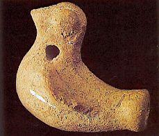 48 - Instrumento musical. Campanilla de cerámica de pastas grises que represent...