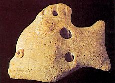 48 - Instrumento musical. Campanilla de cerámica de pastas grises que represent...