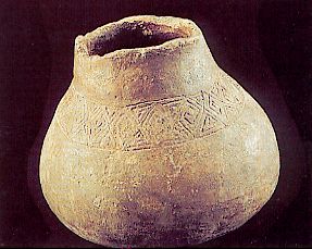 68 - Vasija de cerámica de borde evertido, cuello recto, cuerpo globular y ba...