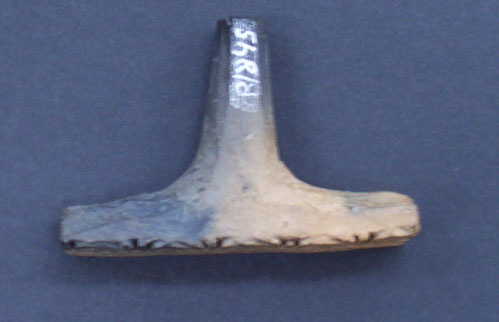 2223 - Fragmento del vástago sólido del pie de una vasija cerámica que represen...