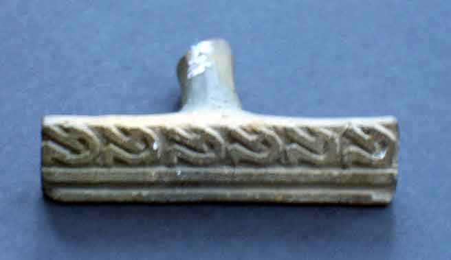 2220 - Fragmento del vástago sólido del pie de una vasija cerámica que represen...