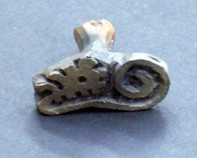 2220 - Fragmento del vástago sólido del pie de una vasija cerámica que represen...