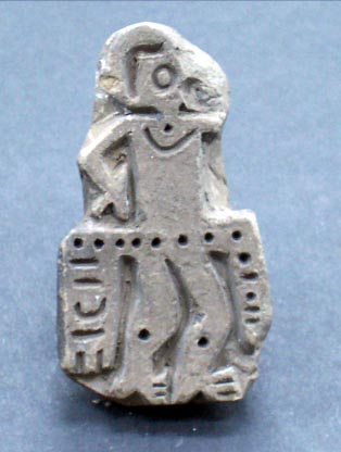 2255 - Vástago de pie de vasija fragmentado que representa una figura humana sede...