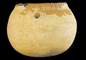76 - Vasija con forma de copa de pasta de color crema, borde recto, cuerpo esf...
