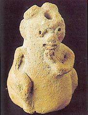 2242 - Pie de vasija sólida fragmentado que representa una figurita sedente. Dent...