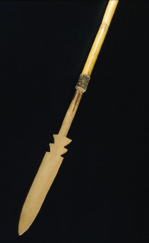 61 - Peine con puas de madera de chonta anudadas y embreadas en uno de sus extre...