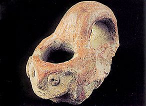 48 - Instrumento musical. Campanilla de cerámica de pastas grises que represent...