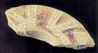 2189 - Plato cerámico trípode con decoración geométrica pintada y excisa.