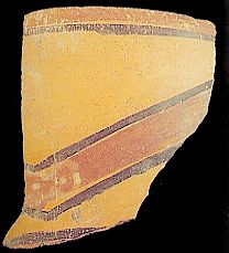 2189 - Plato cerámico trípode con decoración geométrica pintada y excisa.