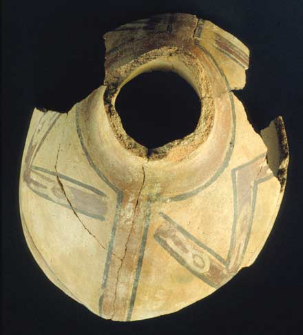 56 - Tortero de ceramica de forma bicónica, con orificio central para la inser...