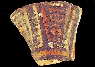 2189 - Plato cerámico trípode con decoración geométrica pintada y excisa.