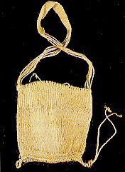 34 - Bolso o mochila de forma cónica de lana tejida en telar, con fondo crema ...