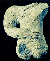 2243 - Fragmento de figura sólida humana sedente, consistente en el tronco y part...