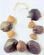 10 - Collar de una vuelta formado por semillas de color blanco y marrón oscuro.