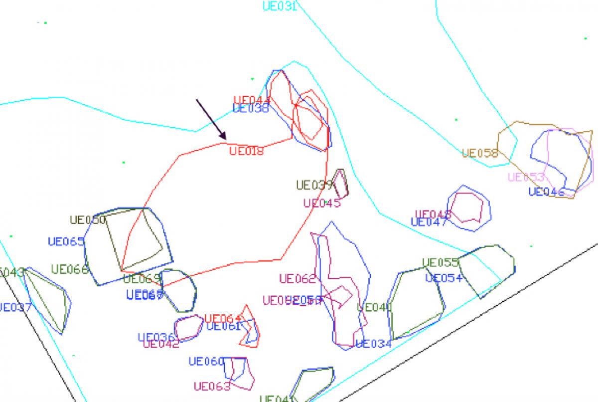 Commentary:  Context of UE018 in relation to other structures.