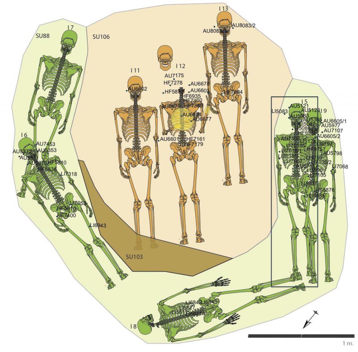 Commentary:  View of the double burial of I5 and I9.