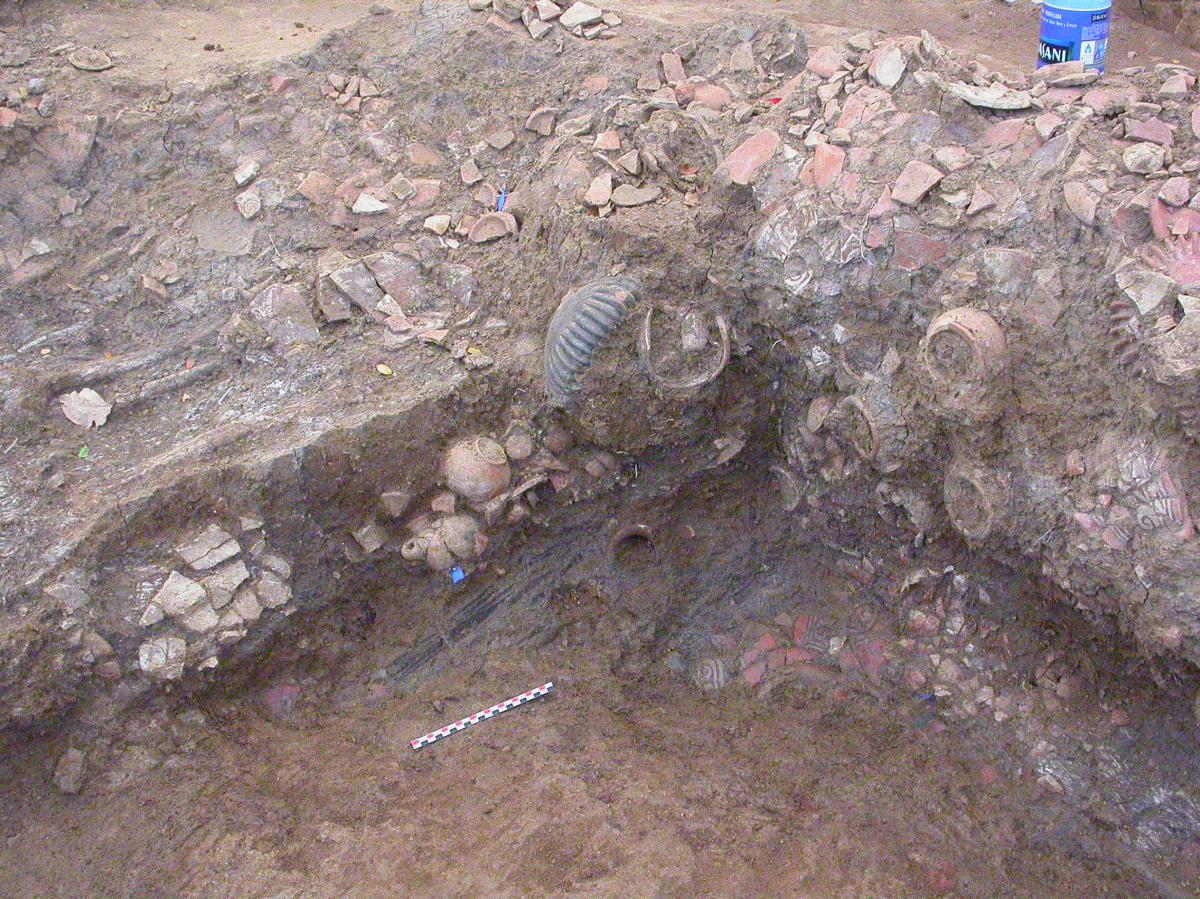 Commentary:  Detail of unit UE104 as excavation progresses and the unit is discovered.