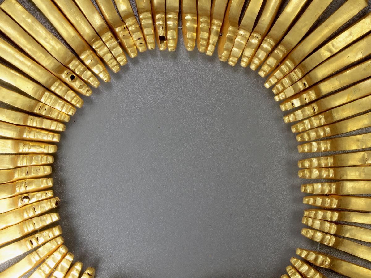 Commentary:  Burial with necklace or choker of feather type beads. Panamá Viejo.
