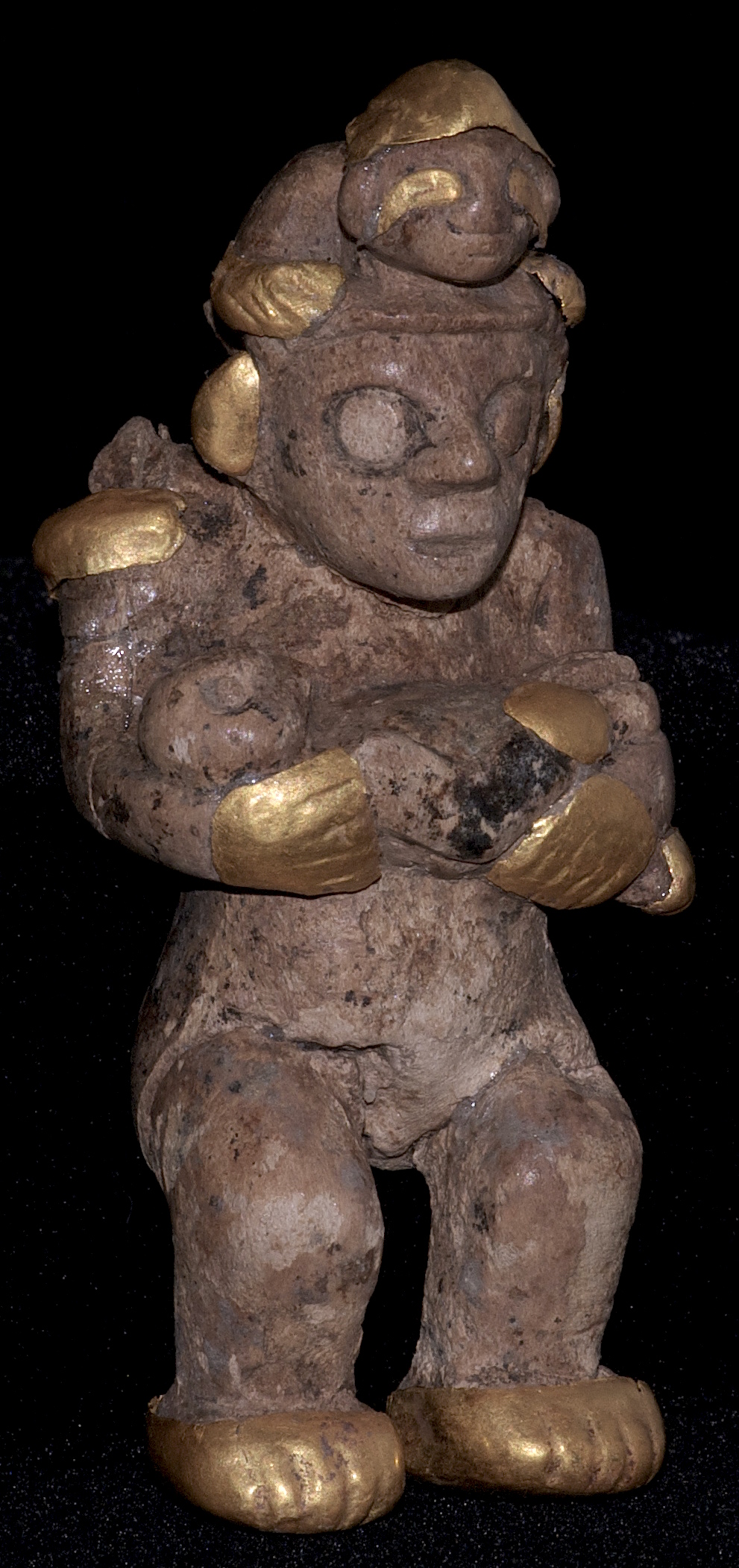 Commentary:  This digital object corresponds to a human figure in an attitude of offering carrying an infant in their arms, which was part of the grave goods of the main individual of tomb T6. This has been interpreted in the text as the sacrificial offering of an infant by an officiant in ritual attire.