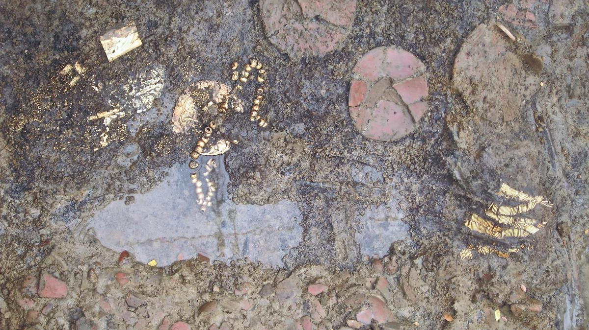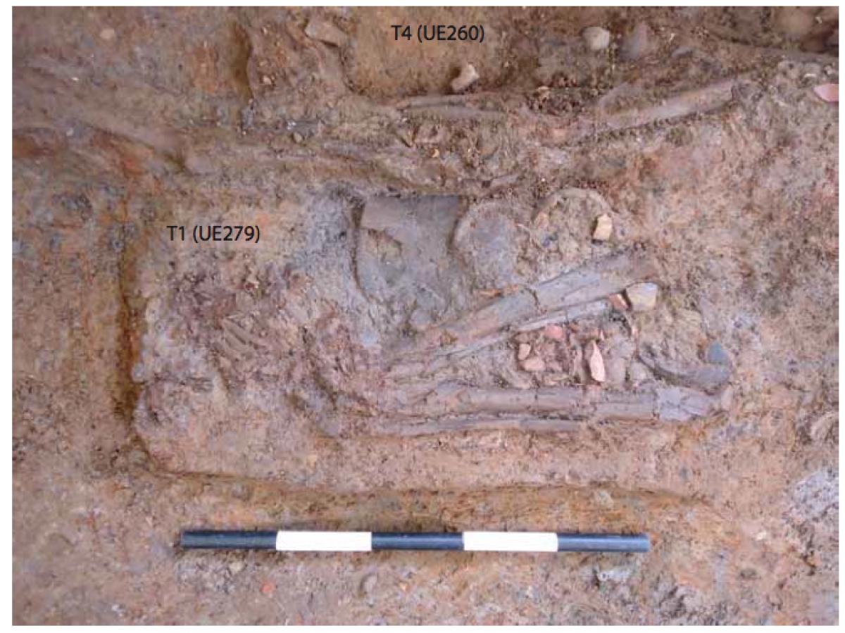 Commentary:  Remains of individual I8. These were excavated in 2014. His body was cut by the excavation of the pit of tomb T4.