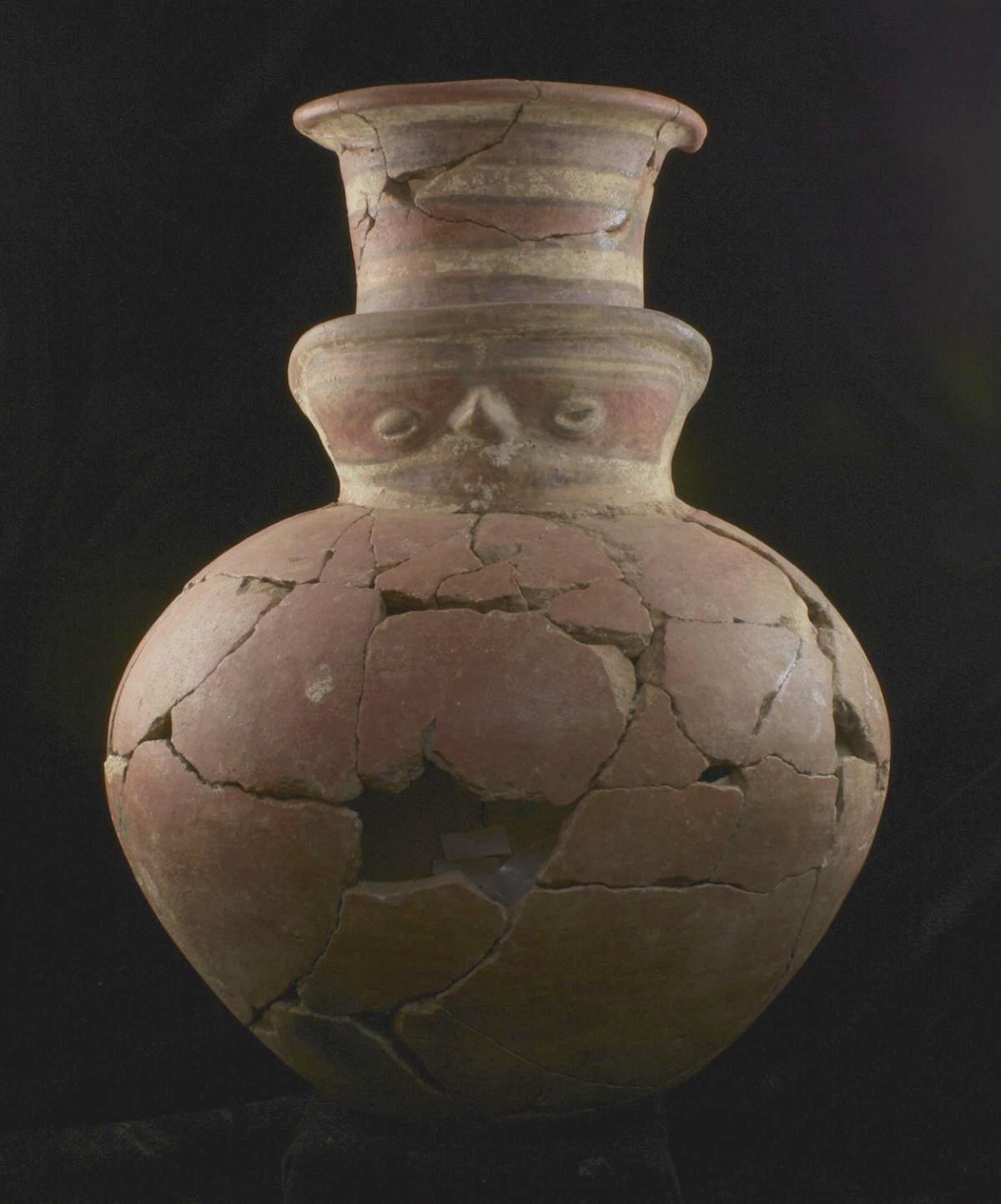 Anthropomorphic effigy vessel. Represents of one of the T2 tomb offerers. We call a type of funeral ritual officiant, the ones in charge of carrying the ceramic offerings, an offerer. They are represented with ceramic jugs on their heads.