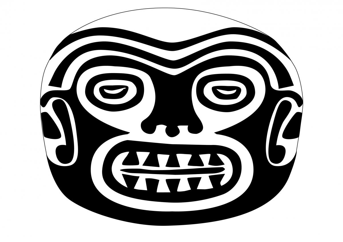 Commentary:  Drawing of pectoral 9267, which has the frontal representation of the face of a supernatural being with the features of an old man.