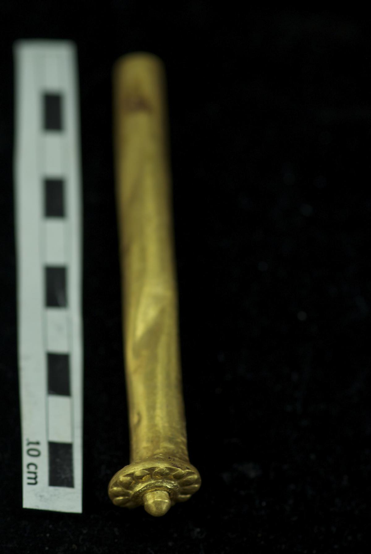 Ear rod with gold tubular body.
