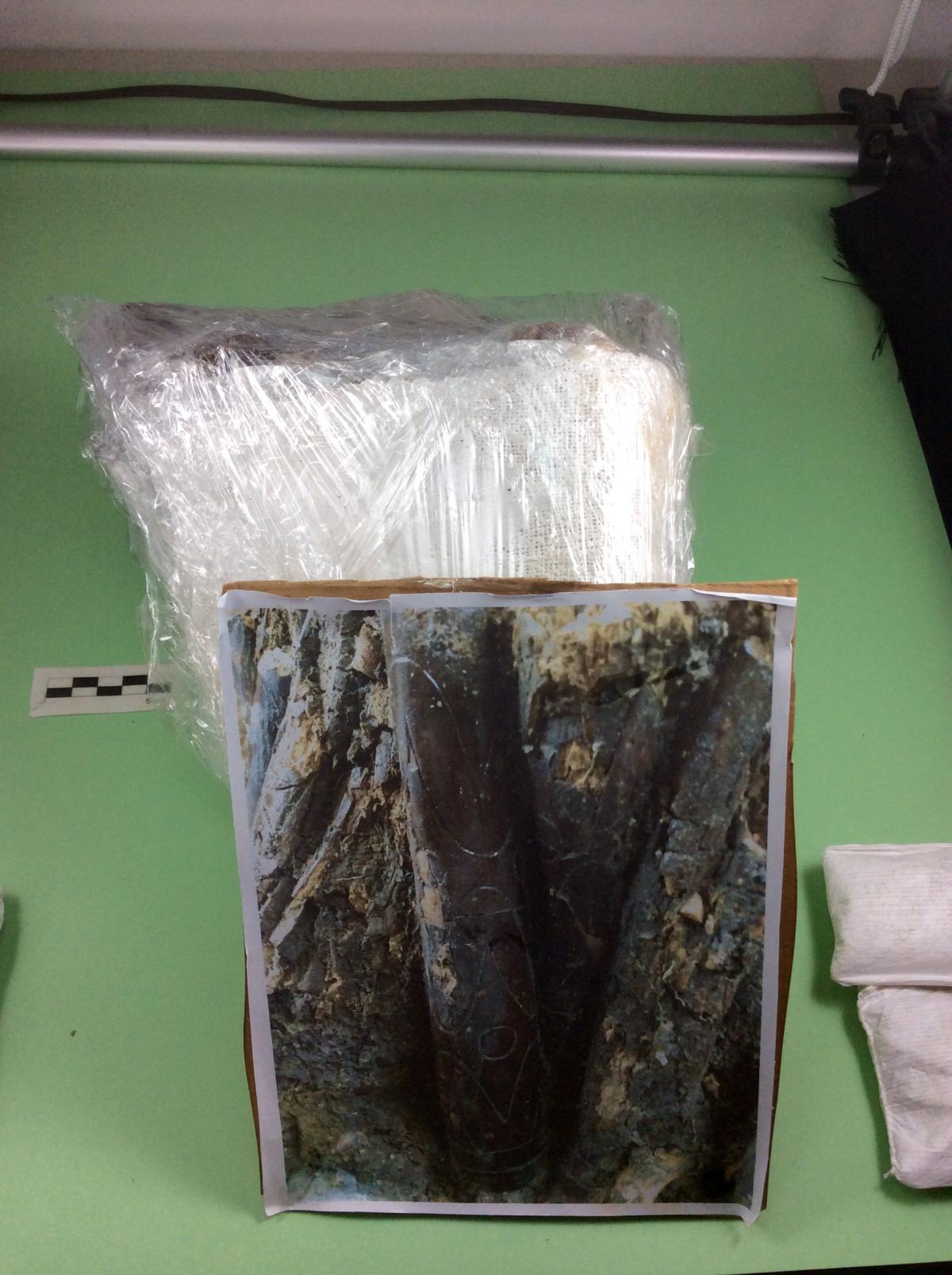 Commentary:  Bone prior to conservatiob/with new fragment added.