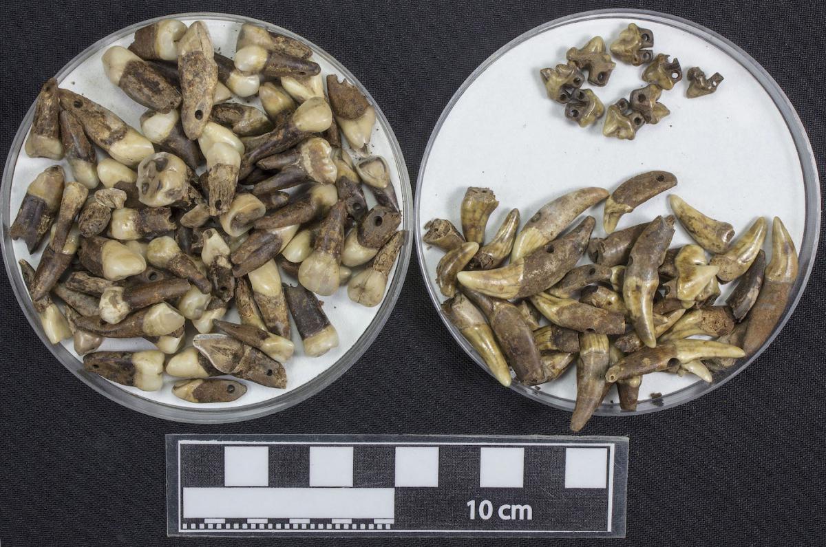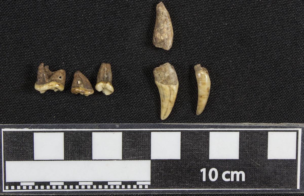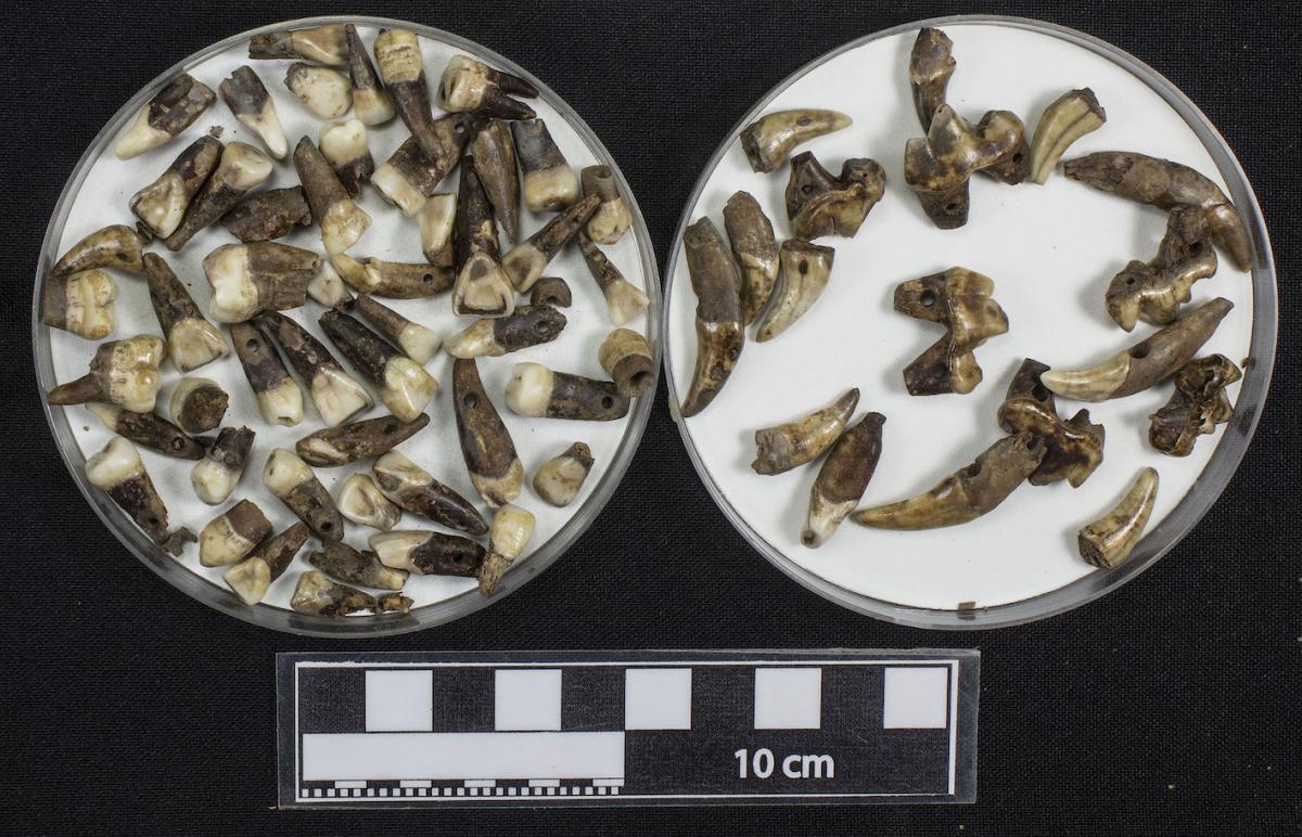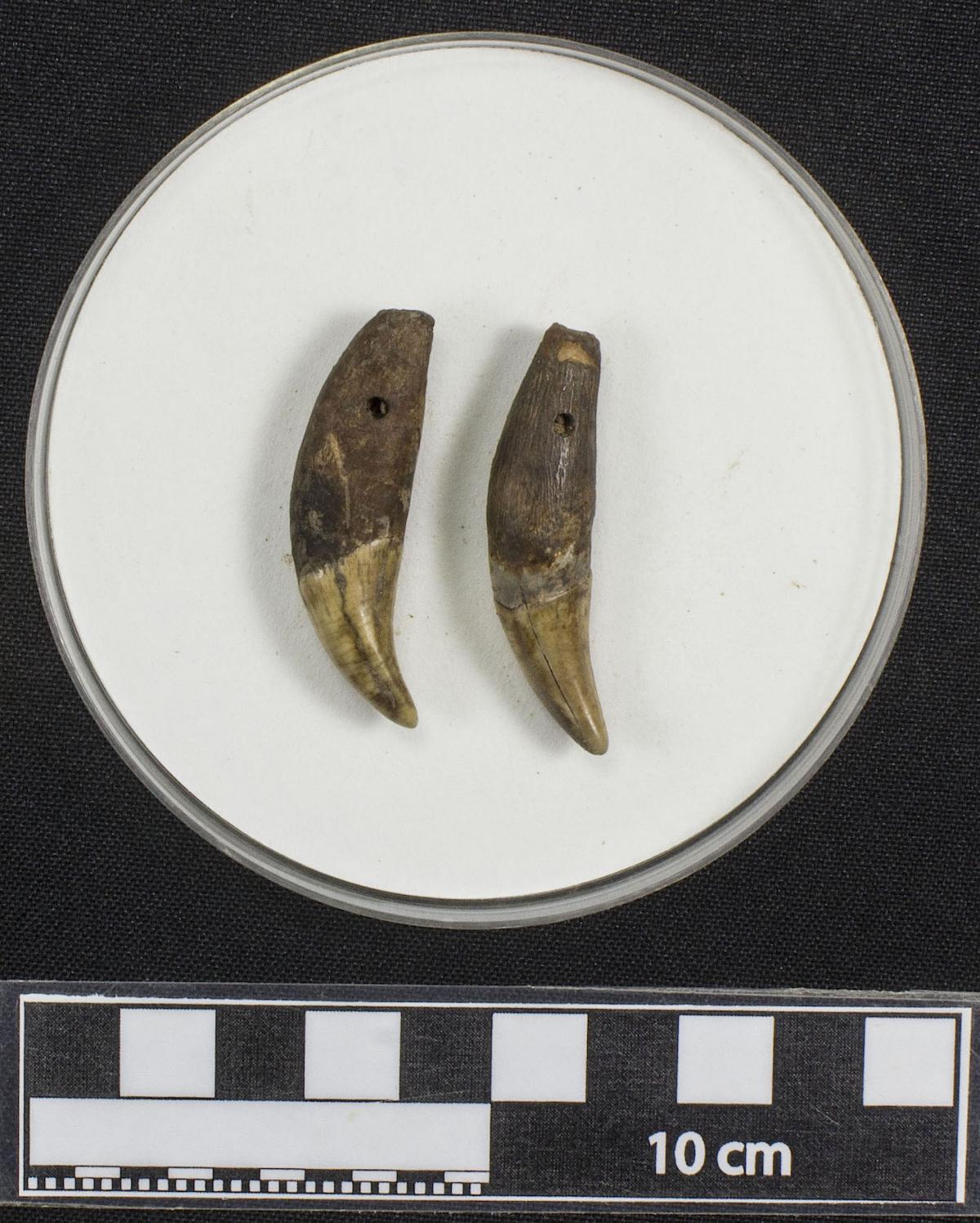 Description :   Perforated human teeth, premolars and molars; and perforated dog canines and molars.