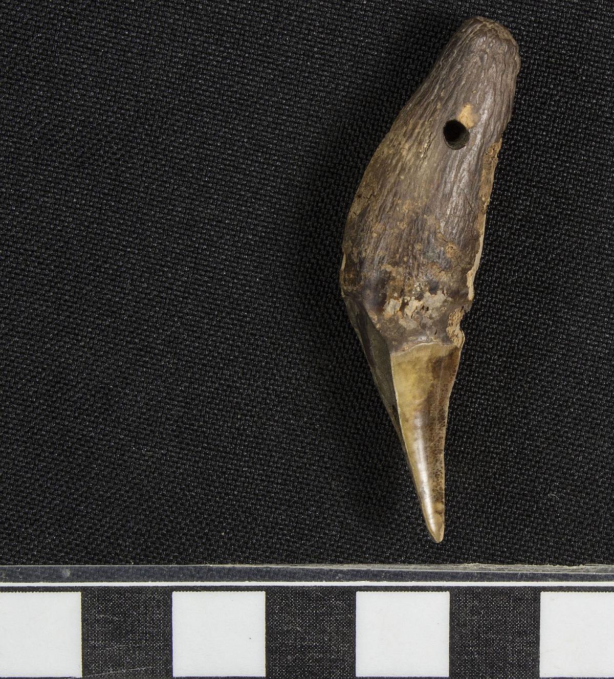 Description :   Perforated human teeth, premolars and molars; and perforated dog canines.