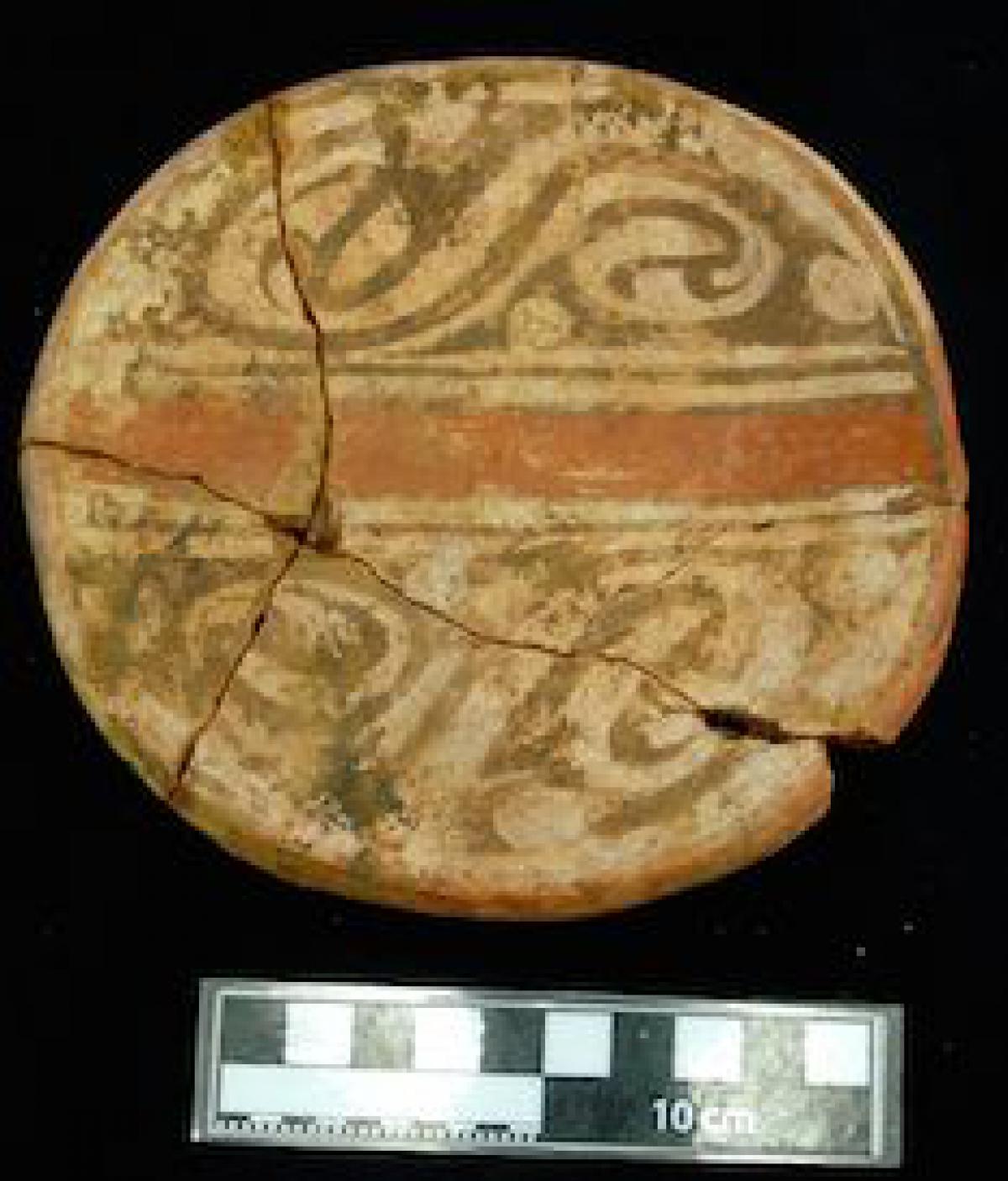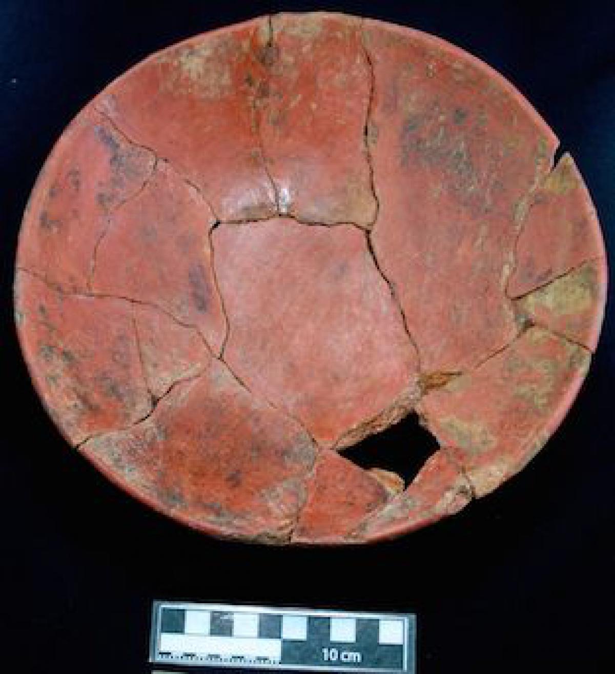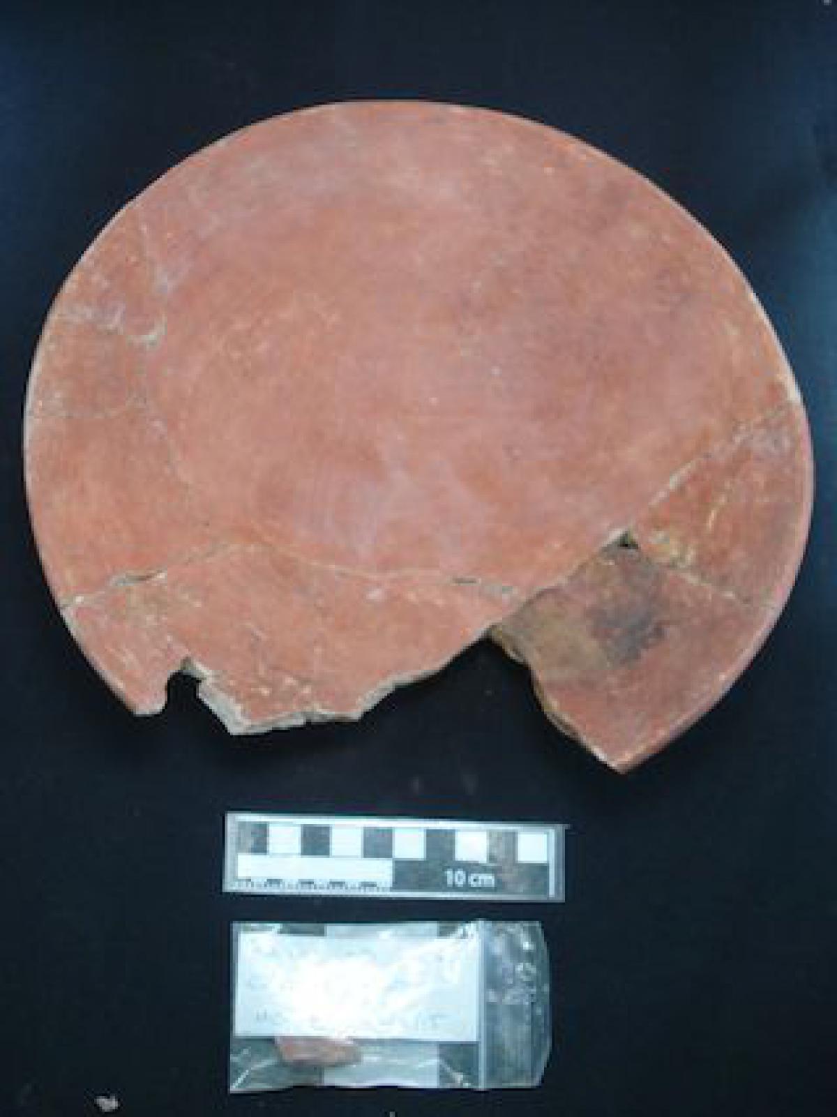 Description :   Plate with red slip exclusively on the front of the piece.