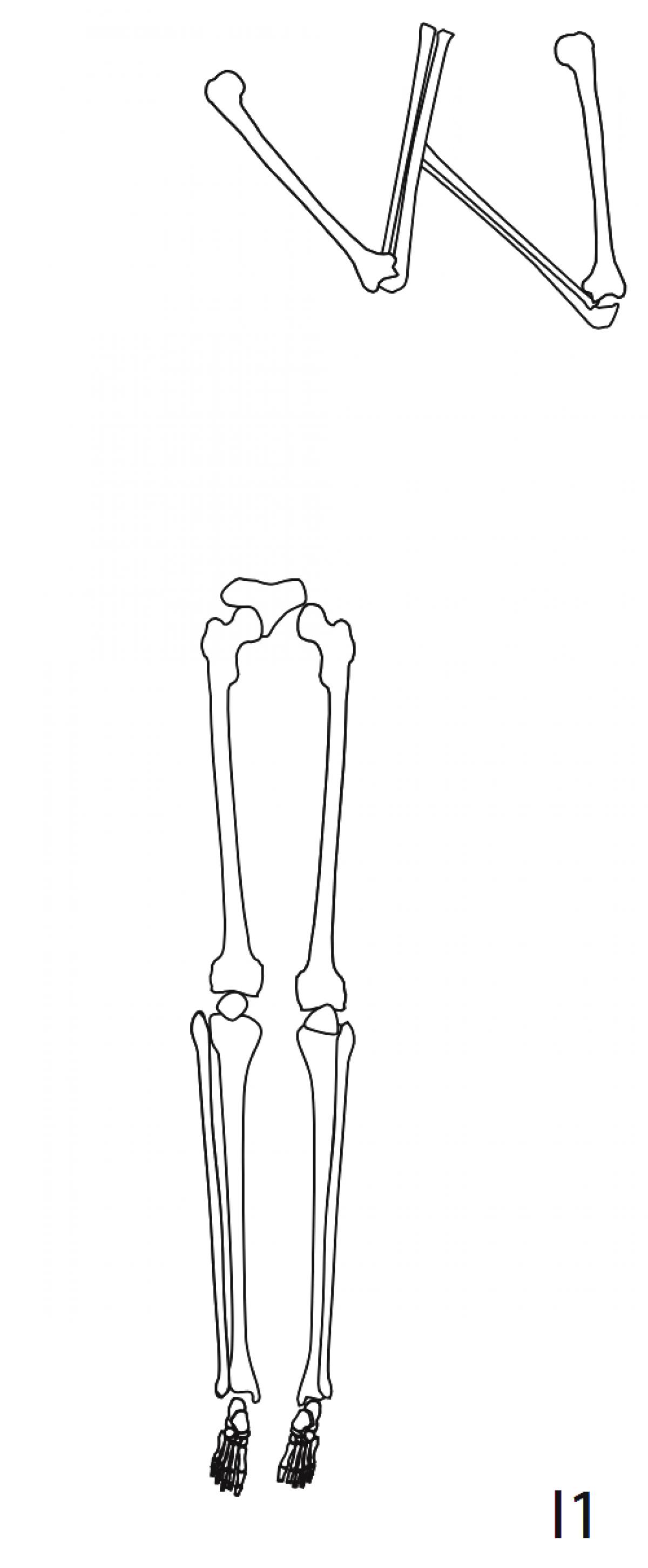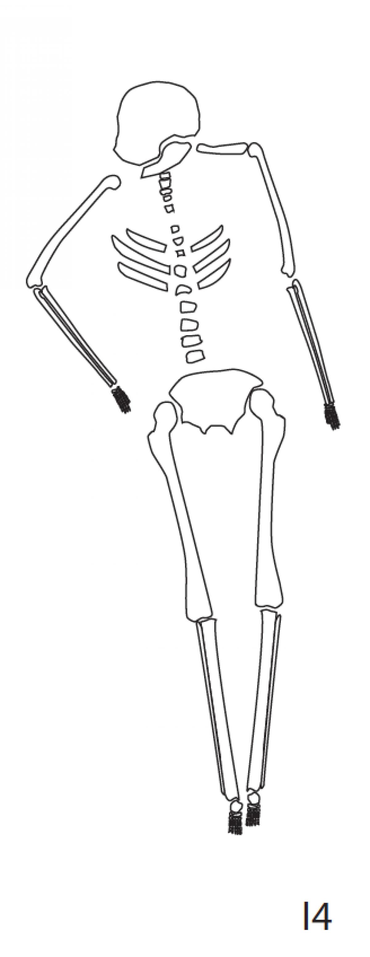 Description :   T1-I01. Adult individual of undetermined sex. Only part of the bones of the legs and arms were found. They were placed with the dorsal ulna extended.