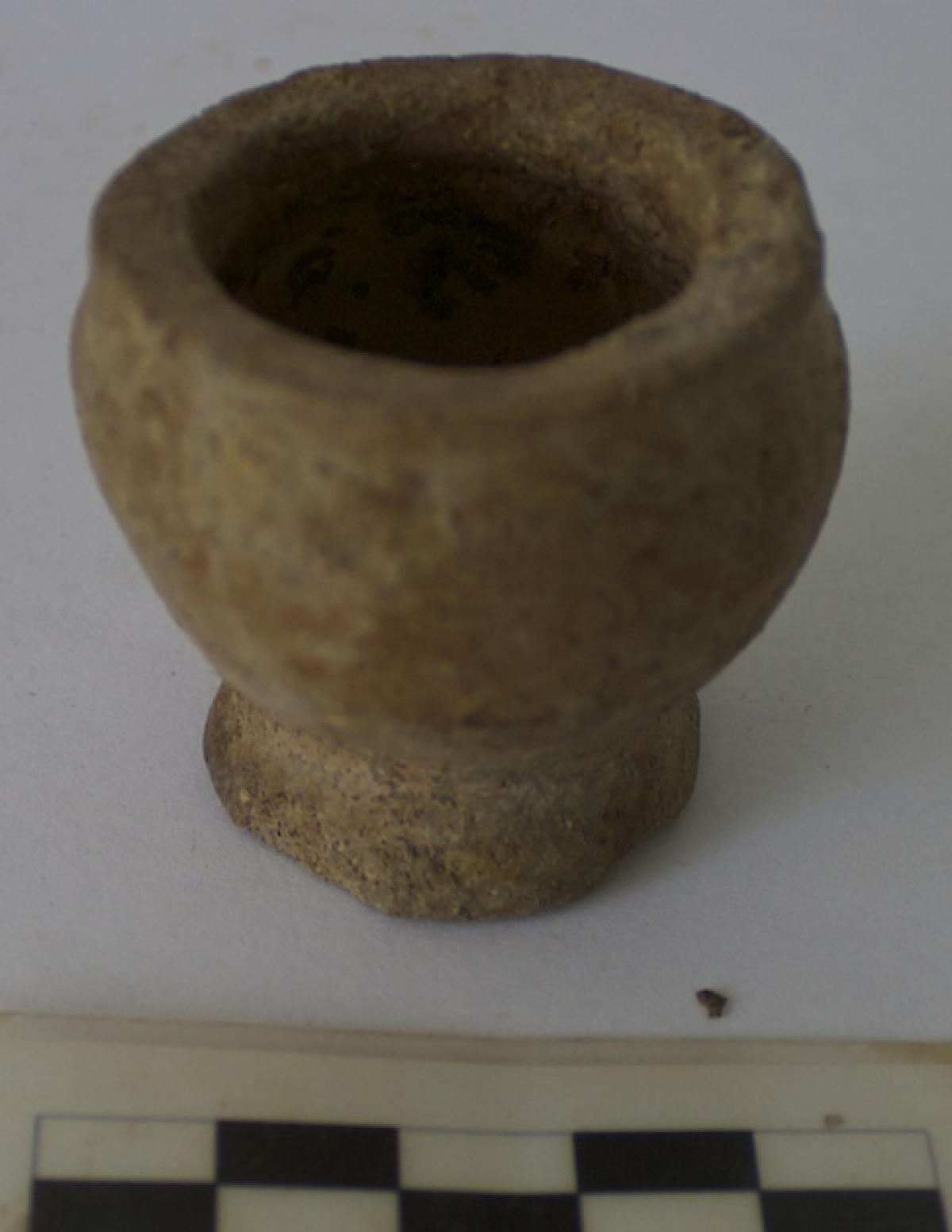 Description :   Hemispherical bowl with a ring base and a thickened rim on the interior. Red slip exclusively on the interior.