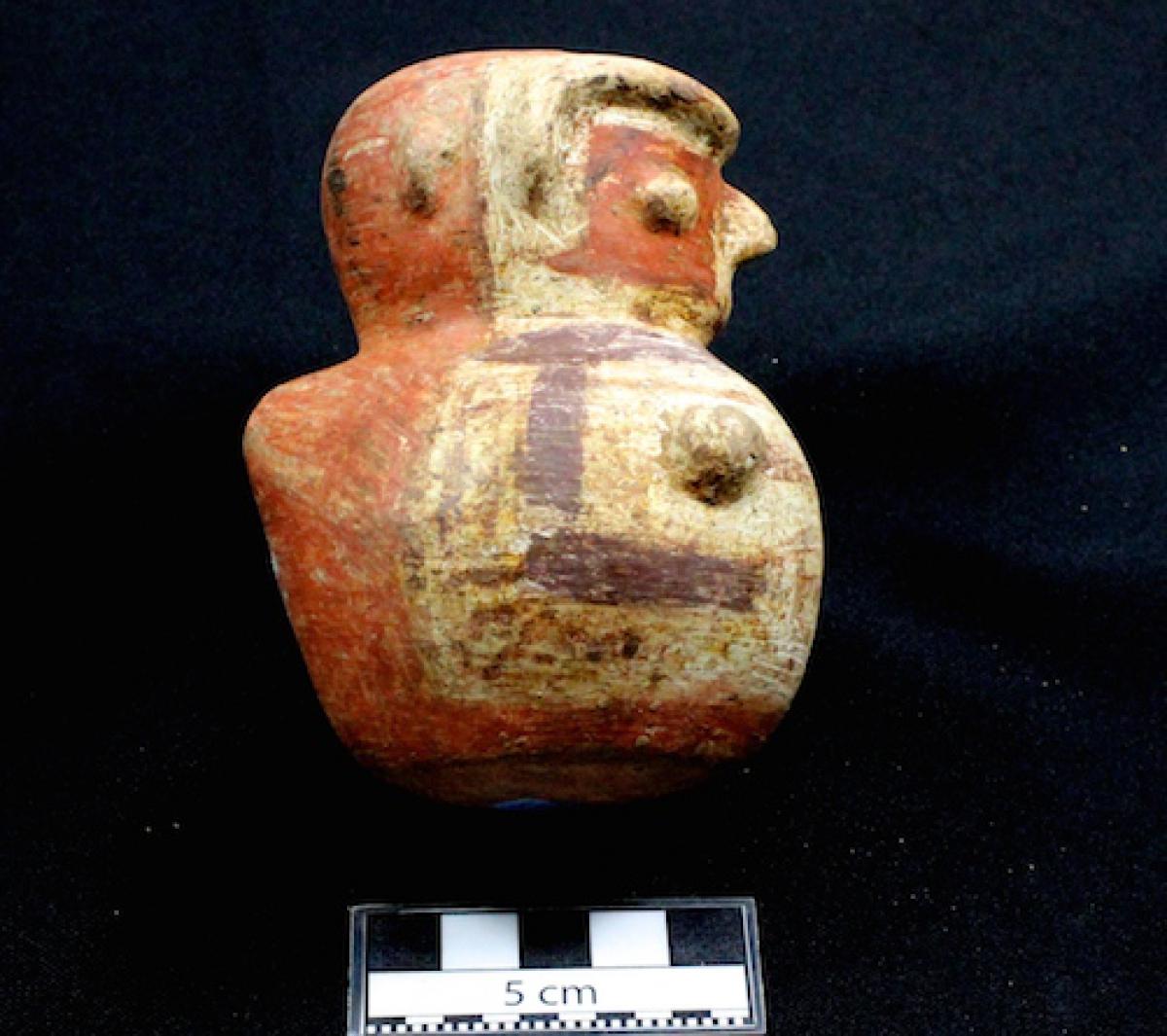 3653 - Efigie híbrida antropo-zoomorfa (humano-cangrejo) polícroma, sin base anular.