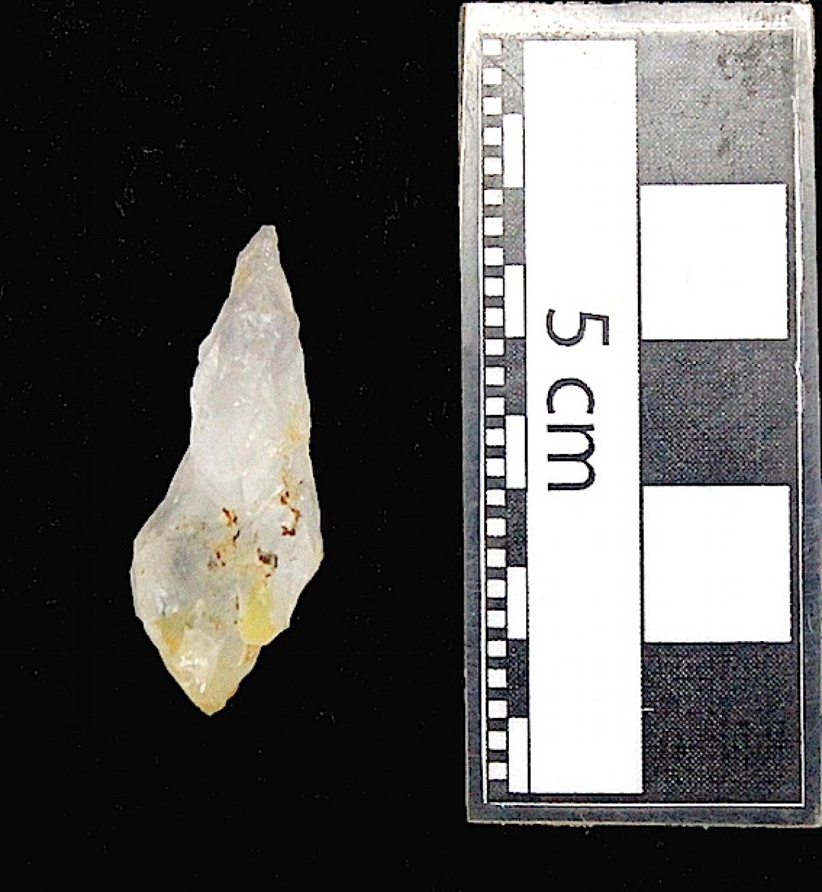 3571 - Diente perforado de tiburón. La perforación indica que pudo haber formado parte de un artefacto ornamental.