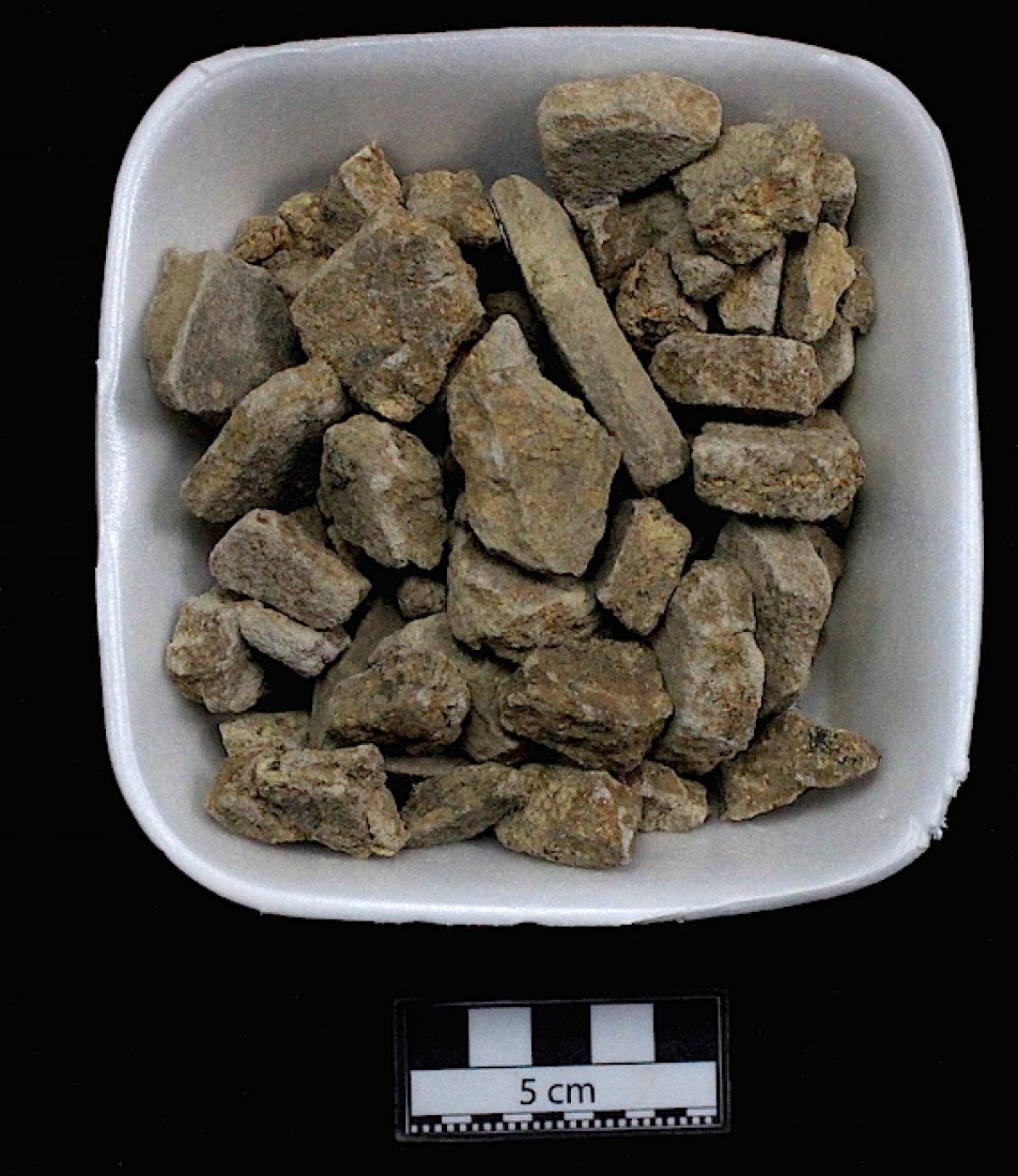 Información del recurso:  Fragmentos de una base de piedra de un espejo de pirita.