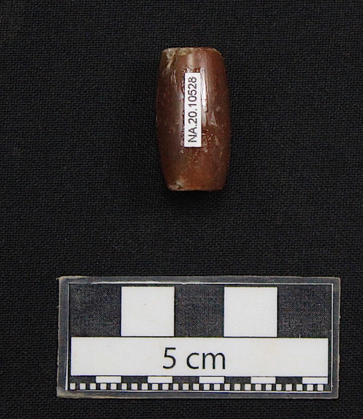 Información del recurso:  Cuenta de piedra. Vista de la perforación del artefacto.