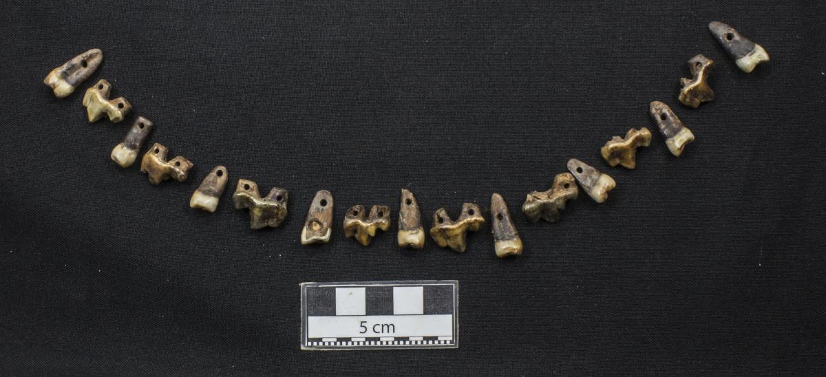3567 - Conjunto de caninos de felino que integraban un collar ornamental, posiblemente asociado a símbolos de poder.