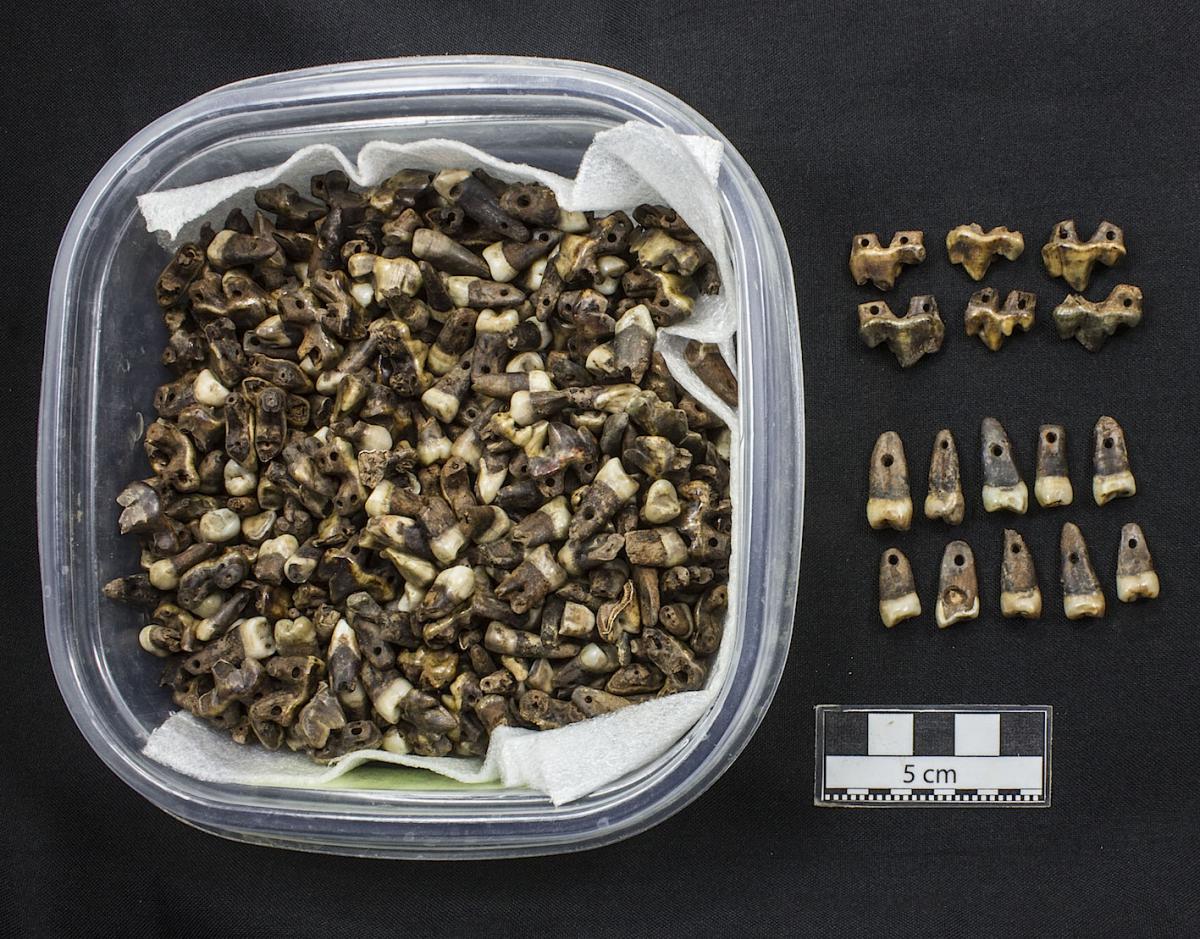 3594 - Conjunto de dientes de fauna, algunos de los cuales presentan perforaciones.
