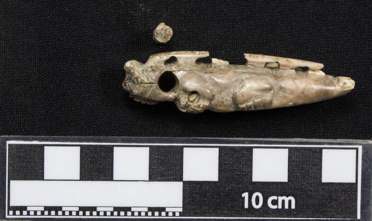 Información del recurso:  Vista superior del pendiente. Para esta fotografía, se colocó al pié, el taco de la perforación extraído del interior.