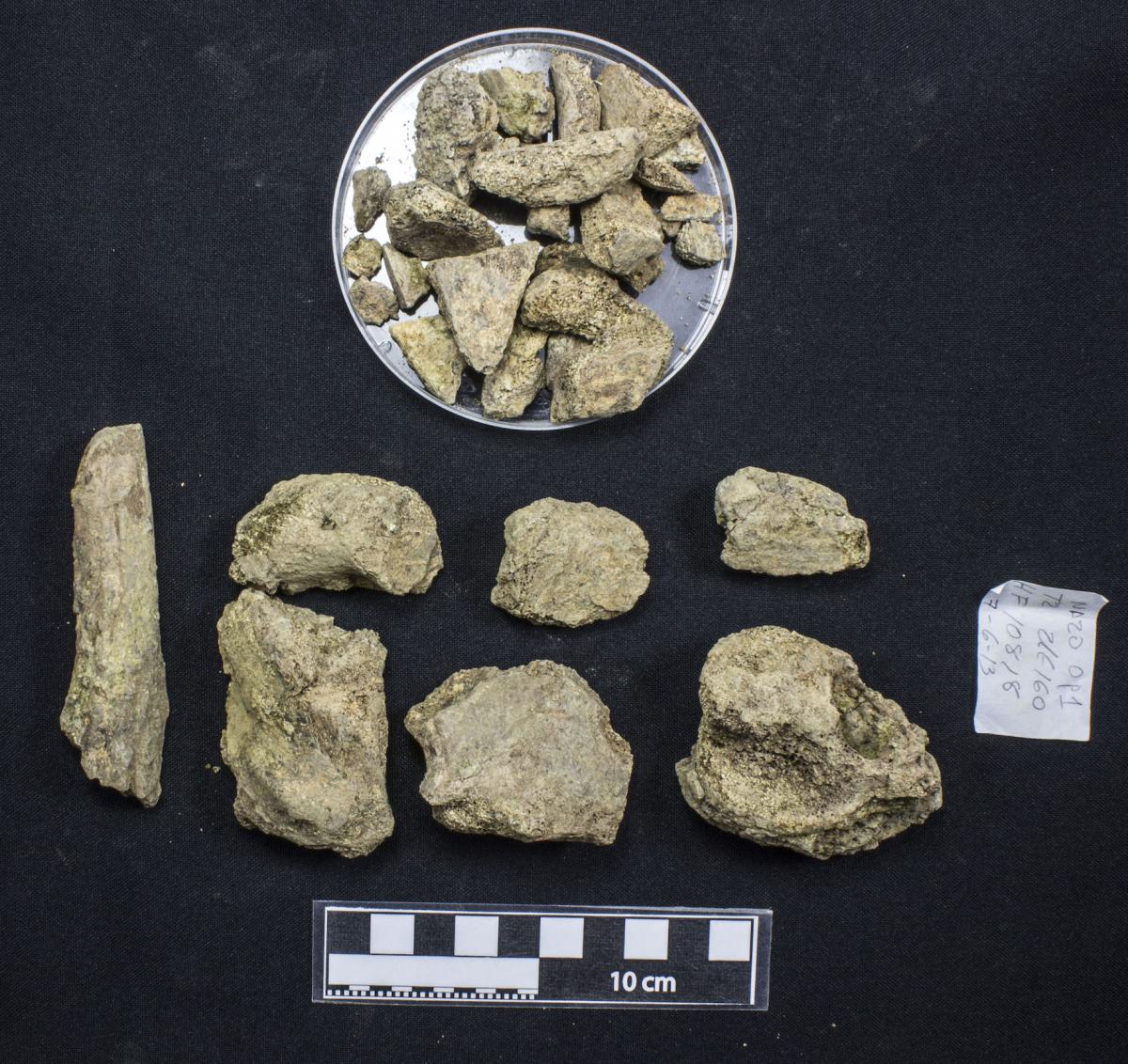 381 - T6-UE125 (a , (llamado en el año 2013, unidad UE167).Entierro de la tumba T6. Depósito de huesos humanos en posición primaria localizado a 3,48 m de profundidad. Es un entierro múltiple...