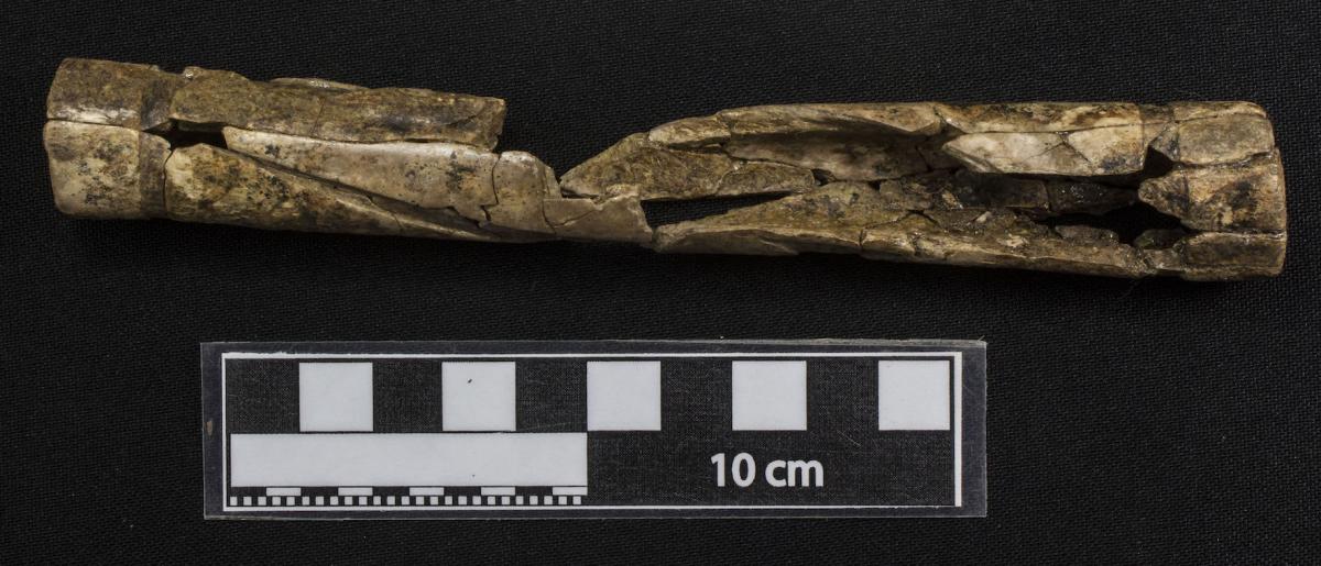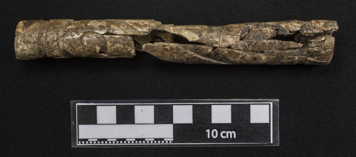 Información del recurso:  Artefacto tubular de hueso. Fue decorado con diseños "yc".