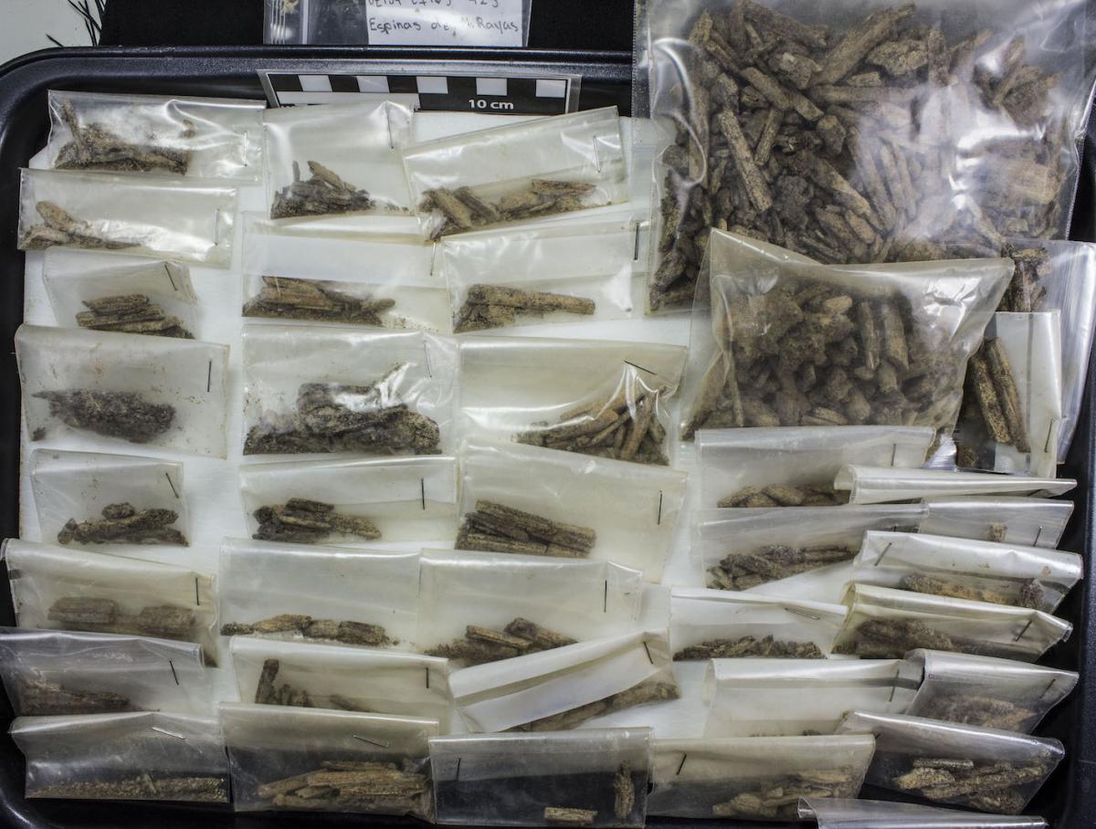 Información del recurso:  Espinas caudales de rayas. Se encuentran fracturas en todos los casos y cubiertas por una patina de resinas. Fueron recogidas en paquete con un solo número de registro.