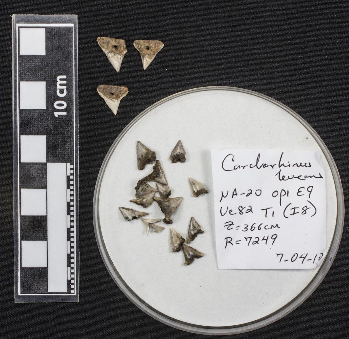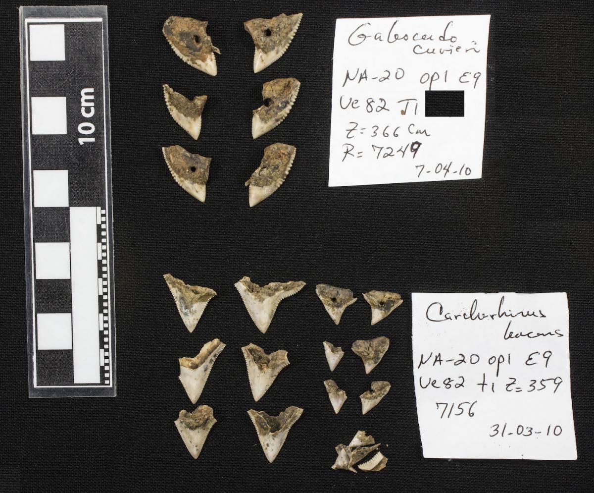 Información del recurso:  Dientes perforados de tiburón tigre y tiburón toro.