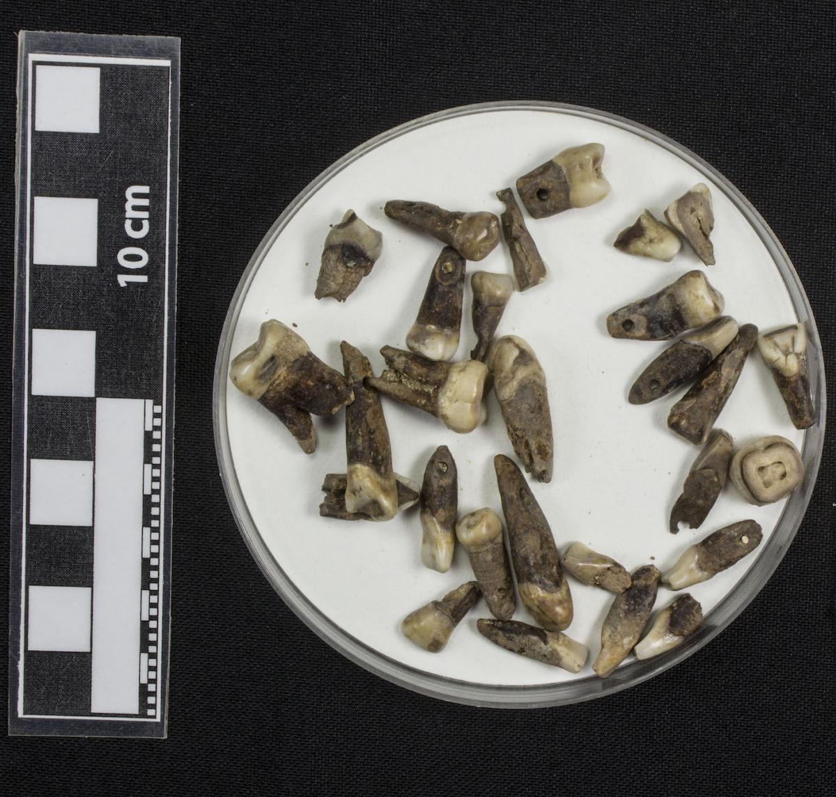 3594 - Conjunto de dientes de fauna, algunos de los cuales presentan perforaciones.